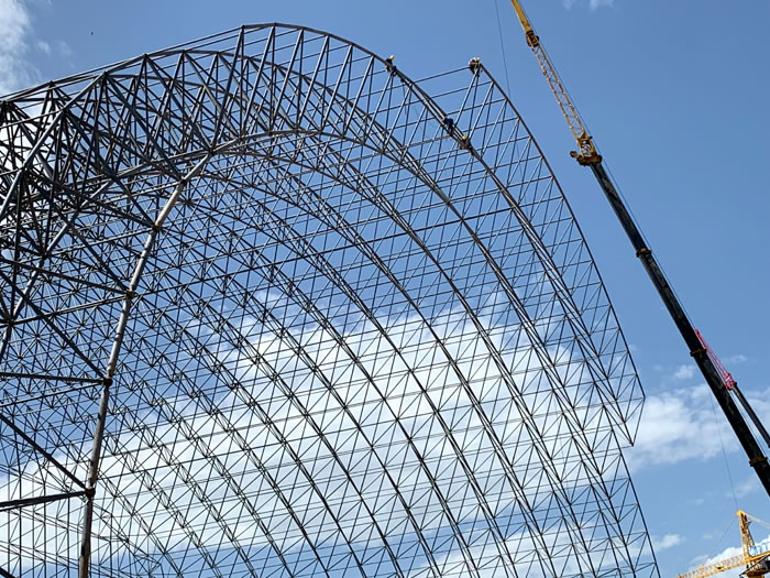 (2)网架加工前应对现场尺寸进行复测,确认无误后方可进行加工、安装;网架制作、运输、安装应遵守《空间网格结构技术规程》JGJ7-2010、《钢网架江苏螺栓球节点》JG/T 10-2009、《钢网架江苏螺栓球节点用高强度螺栓》 GB/T 16939-2016、《江苏钢结构江苏工程江苏施工规范》 GB50755-2012、《江苏钢结构江苏工程施工质量验收标准》 GB50205-2020。